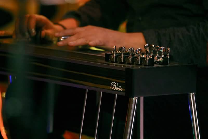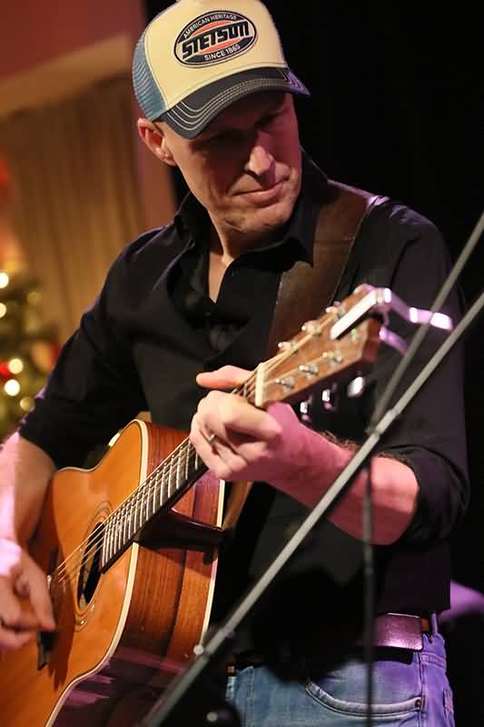 Bertram Mourits, der Vielbeschäftigte. Er hatte seinen Platz am linken Rand der Bühne und war mit einer akustischen Gitarre, einer E-Gitarre, die er mit dem Bottleneck spielte, sowie einer Pedal Steel am Start.