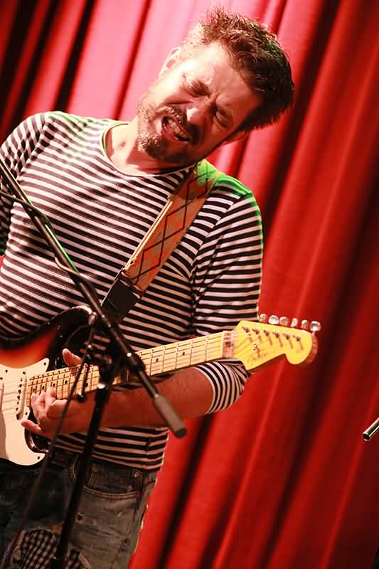 Nach einer kurzen (Werbe-)Pause am Merchandise-Stand setzte man das Konzert mit einem Special Guest fort. Mario Scholten hatte seine Sechssaiter startklar gemacht und zusammen mit dem Trio jammte er zwei Songs, unter anderem "Voodoo Priest", bei dem Timo Gross am Ende die Townshend-Windmühle aktivierte. Mario Scholten, unter anderem bei der Blues Rock-Combo Das Angel Trio gemeinsam mit Bassist Michael Hertich und Wolfgang Knoll (Schlagzeug) aktiv, hatte den Befall der Zuschauer quasi gepachtet. Er zauberte auf seiner Gitarre und war während seines Auftritts definitiv für die zusätzliche Stimmung in der Kulturrampe zuständig. Mario Scholten hatte den Blues in den Fingern und als er die Bühne verließ waren die vielen Schulter-Klopfer nur berechtigt.