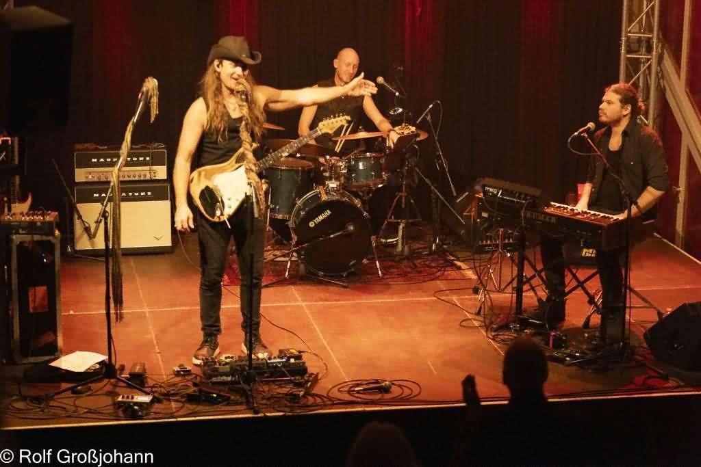 Ulrich Ellison und seine beiden Mitstreiter betraten die Bühne und starteten mit "Machete", einer Nummer aus dem 2014er Album "Synergy". Begonnen mit fernöstlichen Klängen um dann in einen soliden Rocker überzugehen.