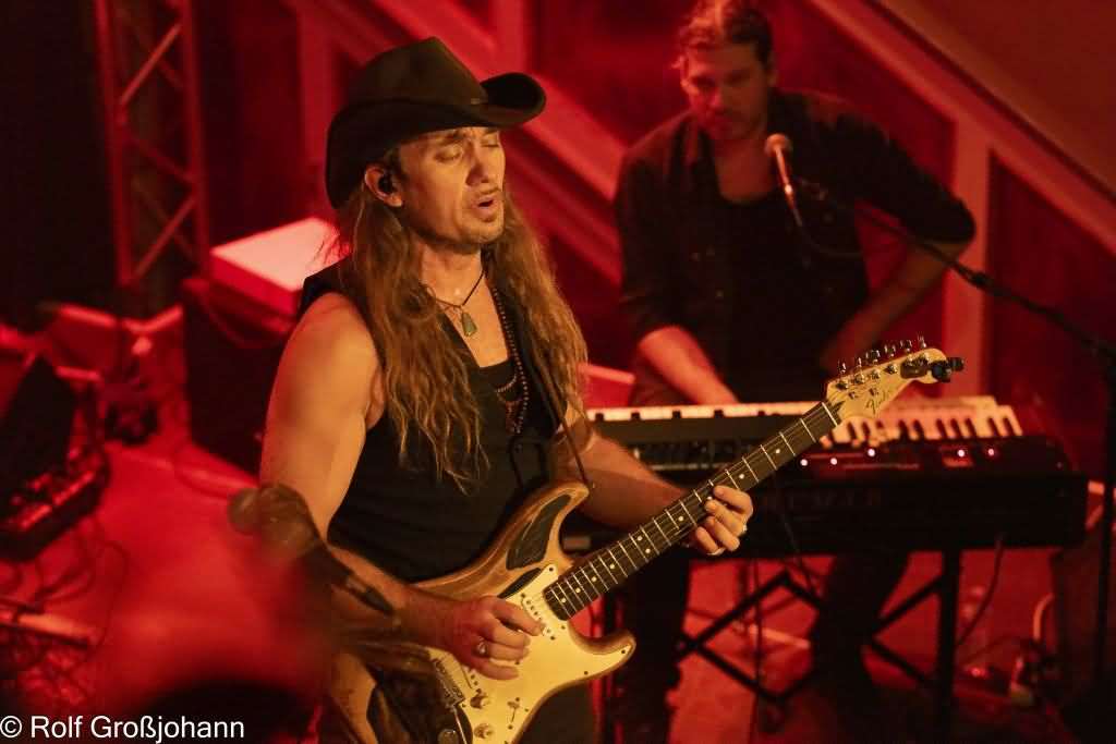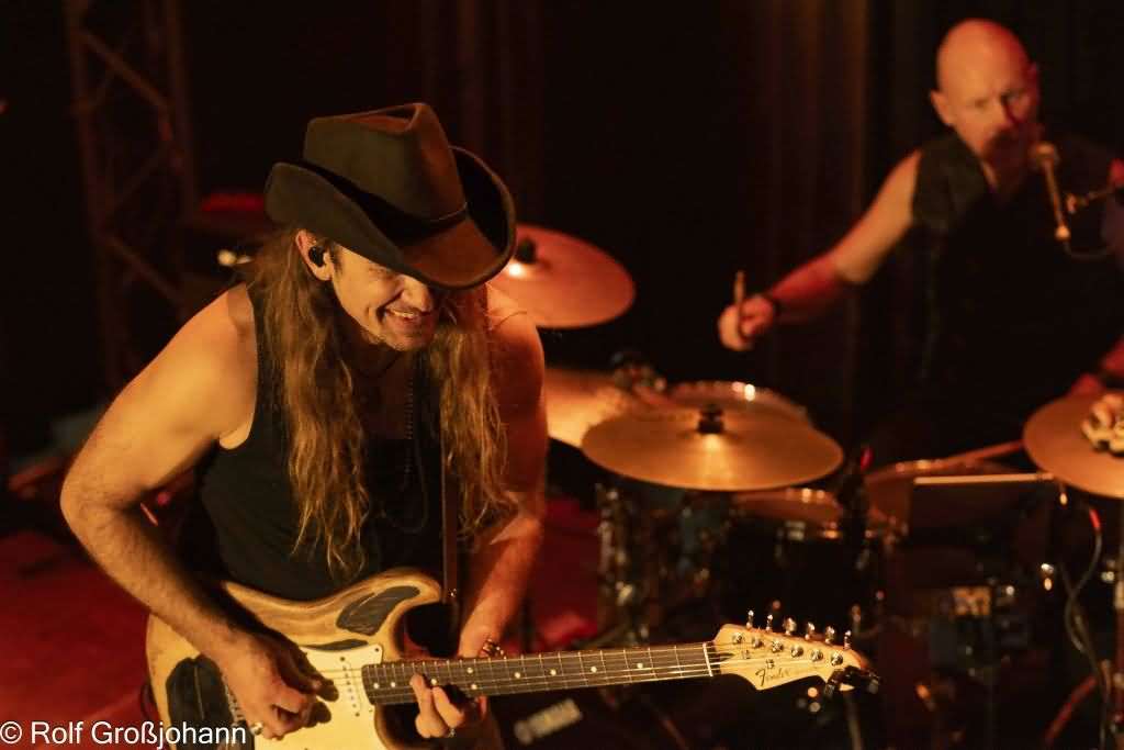Der Spannungsbogen wurde weit geschlagen, ob shuffle, hard & heavy, slow oder funky. Hier zeigte sich die enorme Bandbreite und das musikalische Können der Band. Ulrichs Soli kamen präzise auf den Punkt gebracht, wobei das Griffbrett voll genutzt wurde und das ohne Frickeleien!  Dee Dee G. schuf mit seinem powervollen Groove das Grundgerüst auf dem Bryce Powell mit dem Keyboard seine Basslinien legen konnte.