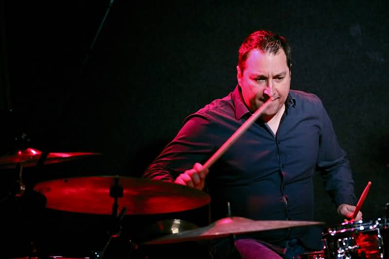 Thomas Lieven trat in Peter Greens "Black Magic Woman" in den Fokus des Interesses. Sein Alleingang war sehr variantenreich, pendelte zwischen Gas geben sowie relaxten Phasen und schloss eine herrlich melodische Becken-Tour ein. Super! Außerdem intensivierte er den Latin-Flair durch eine Timbal-Trommel. Thomas Lieven stand für frische Beats, klasse Rhthmuswechsel innerhalb der Songs und ansteckende Grooves.