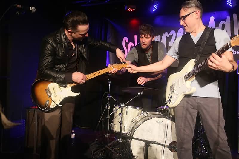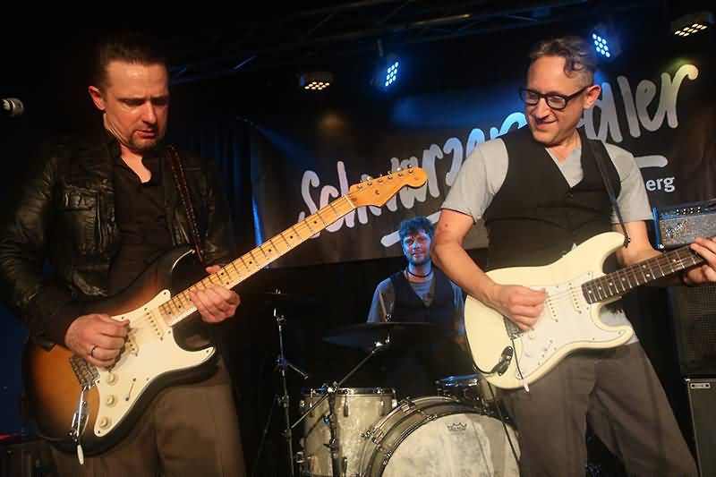 "Back And Front" war ein weiteres beeindruckendes Instrumental und "She Belongs To Me" siedelte sich vom Tempo her zwischen Rock und Ballade an. In "Frisco" lieferte Tony Vega ein Solo in XXL-Format und -Klasse ab. Bei den Gitarristen kam es natürlich auch zu Konversationen auf zwölf Saiten und mit einem Gitarren-Wettkampf konnte man ebenfalls begeistern. Die musikalisch-geografische Kompassnadel zeigte in Richtung Texas. "Big Legged Woman" (Freddie King), Albert Kings "You’re Gonny Need Me" oder das mit scharfen Rock’n’Roll-Riffs angemachte Jimmie Vaughan-Tribute "Jimmie Lee" waren sehr gelungene Griffe in die Zitaten-Kiste. "Drinking Beer" bestand definitiv nicht aus alkoholfreiem 12-Takter. Das begeisterte Publikum bestellte quasi bei einer 'Last Order, Please!' mit lautstarkem Beifall eine Zugabe. "Couldn’t Stand The Weather" war Texas Blues in der furiosen Funk-Variante. Bei diesem Konzert der Vega Strauss Band gingen schließlich nach fast zwei Stunden Spielzeit beide Daumen hoch. Sowohl bei der Gruppe als auch der Song-Auswahl passten alle Puzzleteile zusammen. Hats off, Tony, Kai, Henrik und Mats!
