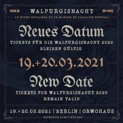 Denn die De Mortem Et Diabolum Veranstalter laden am 30.04.2020 zu einem neuen Event: »Die WALPURGISNACHT an event enflamed by De Mortem Et Diabolum' geht in die erste Runde«.