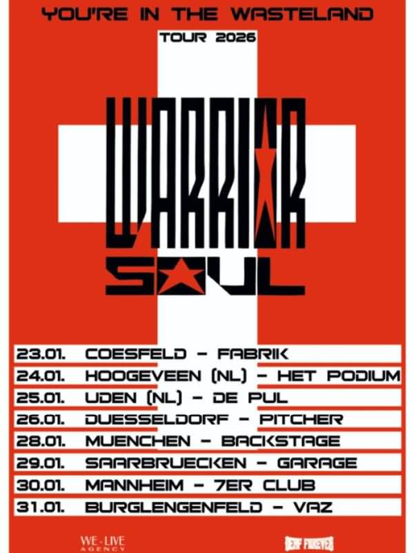 1991 brachte die US Hard Rock-Band Warrior Soul ihr Album "Drugs, God and the New Republic" heraus, das als Band Klassiker gilt. Darauf war unter anderem der Song "The Wasteland". 2026 gehen Warrior Soul auf "You’re In The Wasteland Tour 2026", wobei nicht nur der Titel, sondern auch das Tourplakat an die damalige Scheibe erinnern.