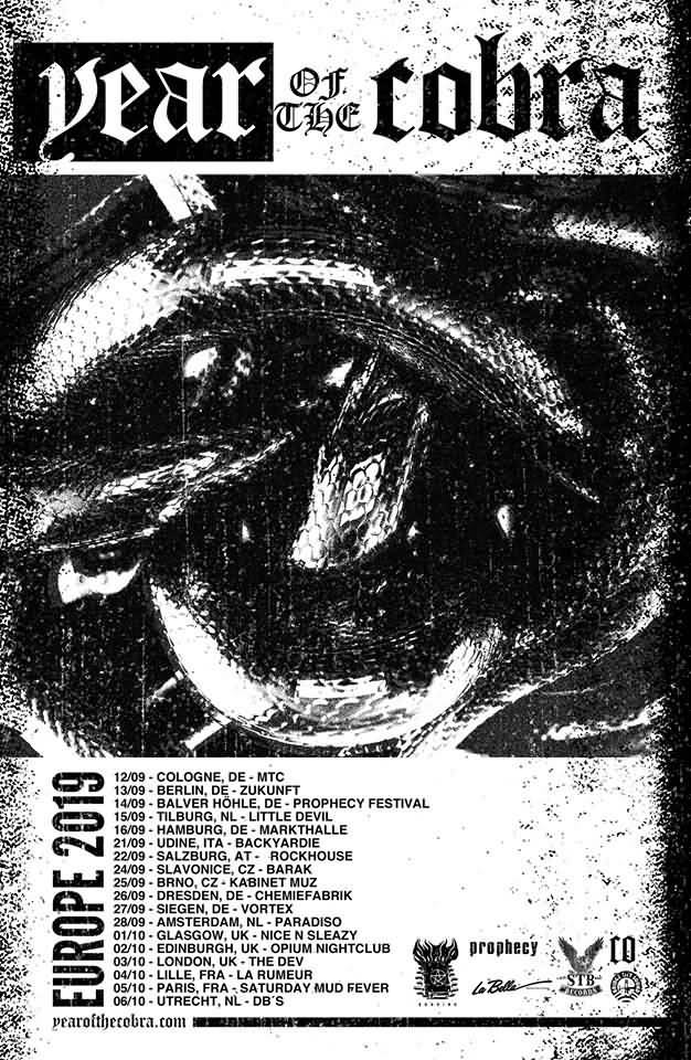 Im Fall vom Year Of The Cobra empfehle ich, bei deren Label Prophecy nachzufragen. Auf dessen Festival spielen Year Of The Cobra und die Tour wird zumindest von Prophecy mitpräsentiert. Ich hoffe, dort kann man Dir weiterhelfen. https://de.prophecy.de/kuenstler/year-of-the-cobra/